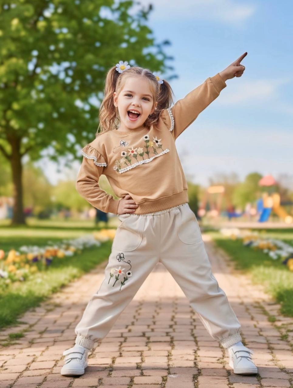 بلوز شلوار بیرونی طرح گل با شلوار کتان🌟 مناسب3سال تا حدود 10 سال 🌟 سایز ۴۰/۴۵/۵۰/۵۵/۶۰🌟 جنس بلوز پنبه دورس لاکرا٪🌟شلوار کتان درجه یک٪ 🌟تضمین کیفیت و قیمت❌ اندازه سایز بندی ها در پایین صفحه درج شده ❌